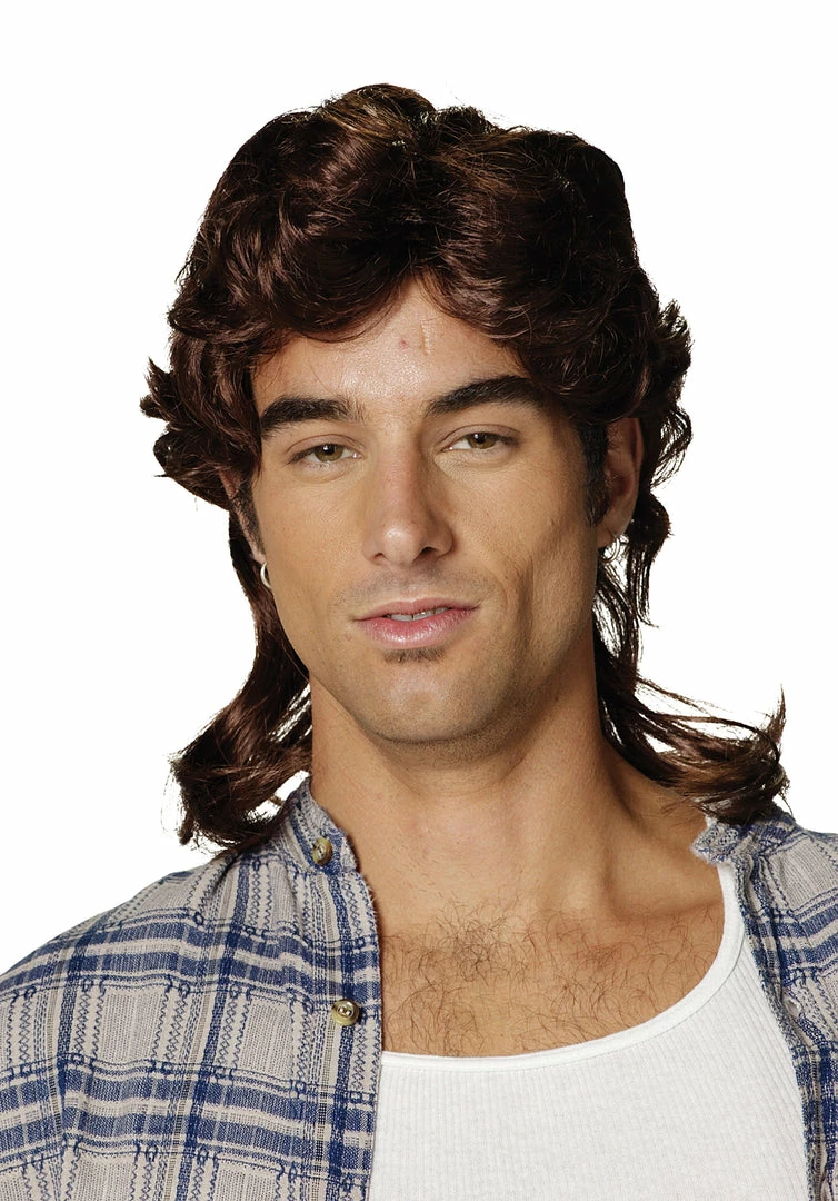 Short curl bangs with longer curled back. A super wig for many characters. Looks great to wear with our AA216 Trailer Park King.