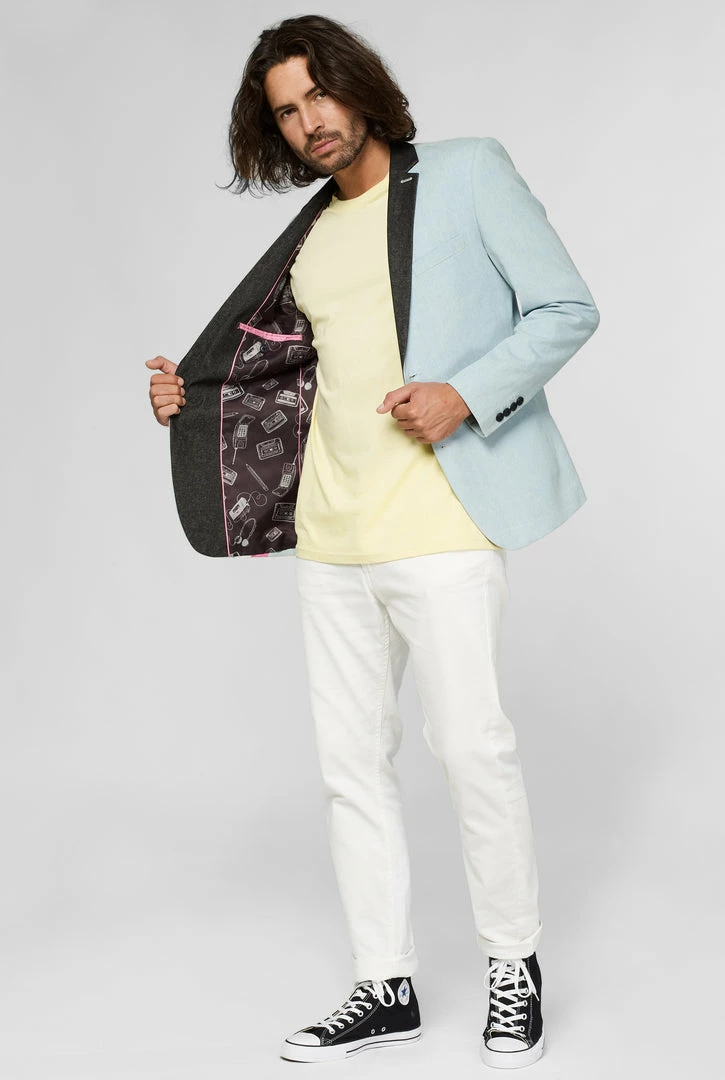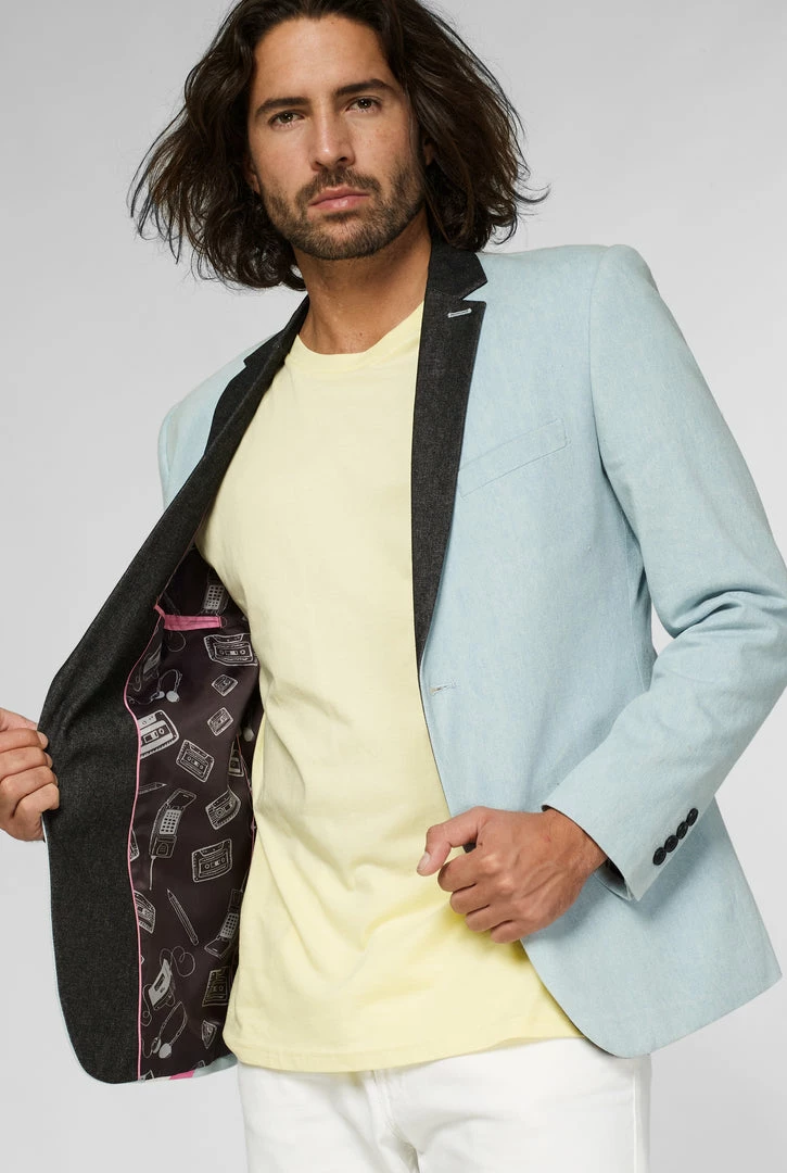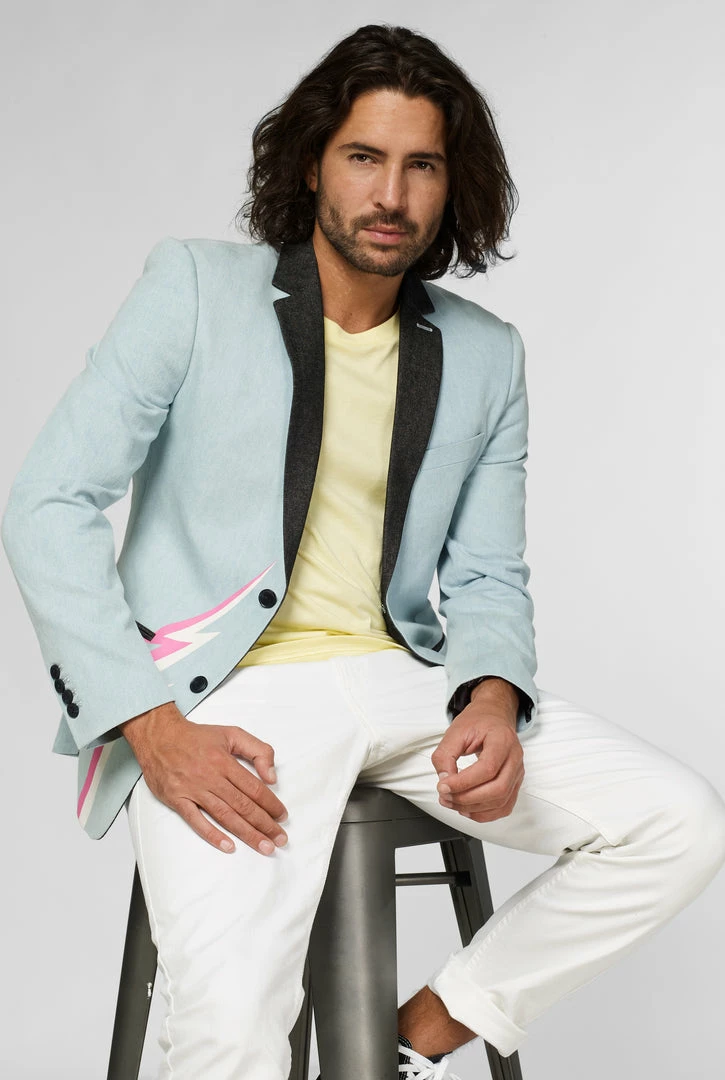 Designed with the vibrant style of the ‘80s in mind, this OppoSuits Deluxe blazer adds a funky edge to your wardrobe and brings a hint of coolness to every occasion. It’s made of denim with printed lightning bolts on the front and the back, resulting in a sophisticated yet expressive look.