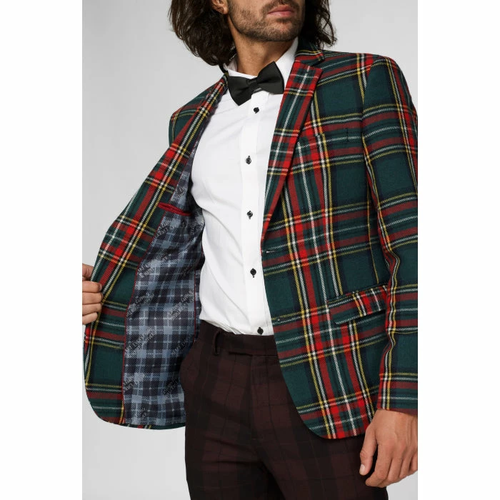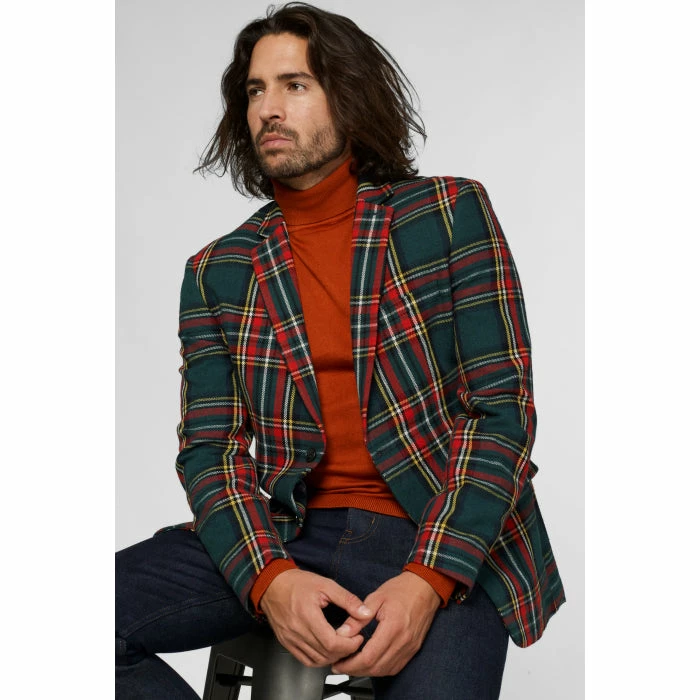 Tartan is a contemporary and cool look, giving you the confidence to express your personality during the most festive season of the year. This Deluxe jacket is a funky wool blend blazer with a classic check and a statement ‘merry everything & happy whatever’ lining.