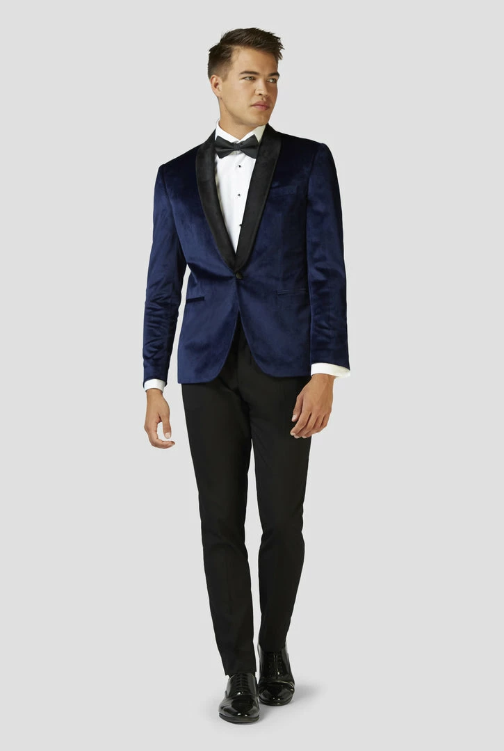 Sophisticated and stylish yet easy to wear; this deep blue velvet dinner jacket with a black shawl lapel is an item every gent should have in his wardrobe. The soft, smooth OppoSuits Deluxe item is your best friend during the entire holiday season (and beyond – it’s timeless).