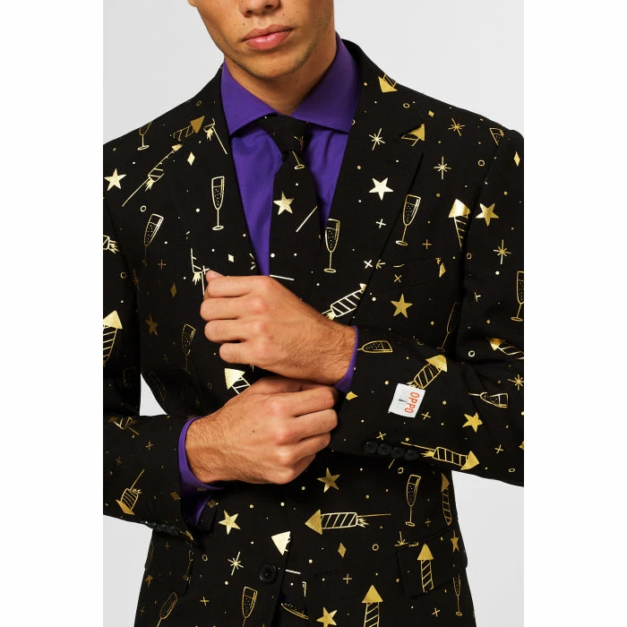 When there are fireworks and Champagne, you know it’s a special occasion. So dress up to dazzle with this eye-catching suit. It has a unique glossy gold foil that instantly makes you sparkle. Yes, once you try it on, you wish it was New Year’s Eve every day!