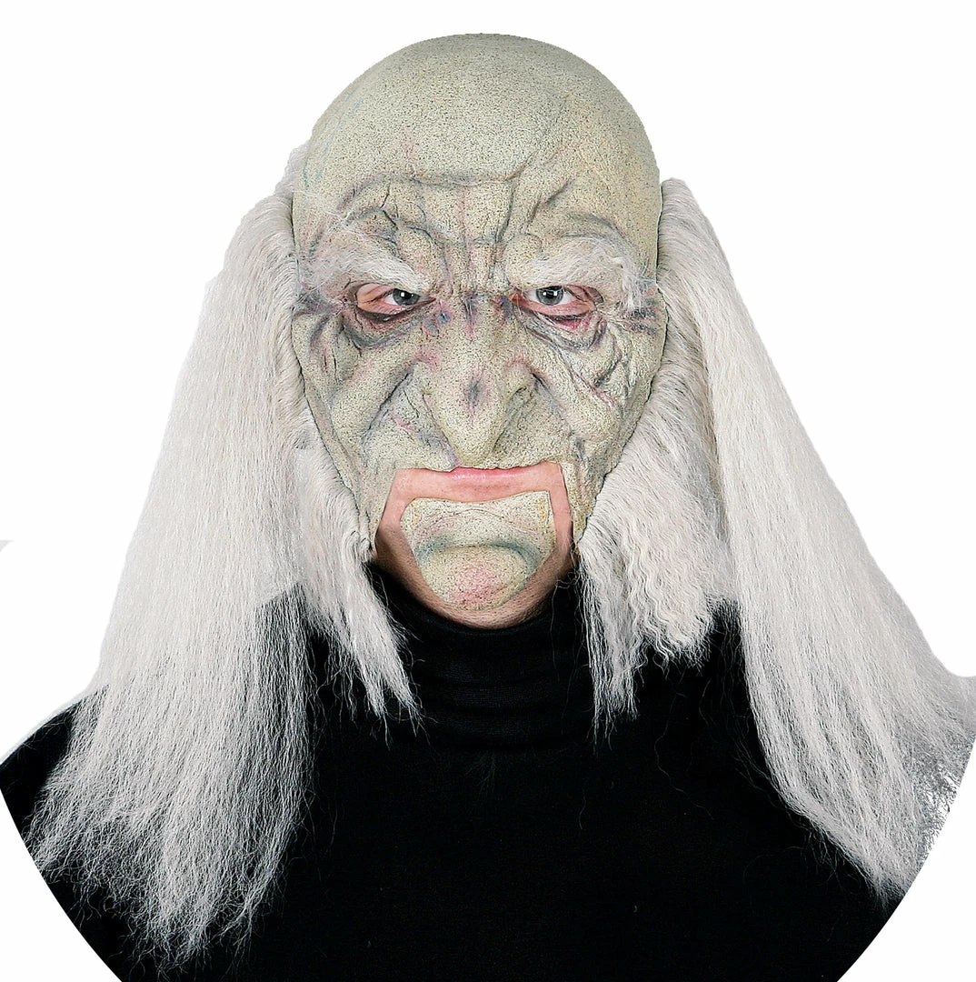 Over the head latex mask with elasticized jaw attachment and natural looking hair. Moving jaw allows for ease of eating and drinking.