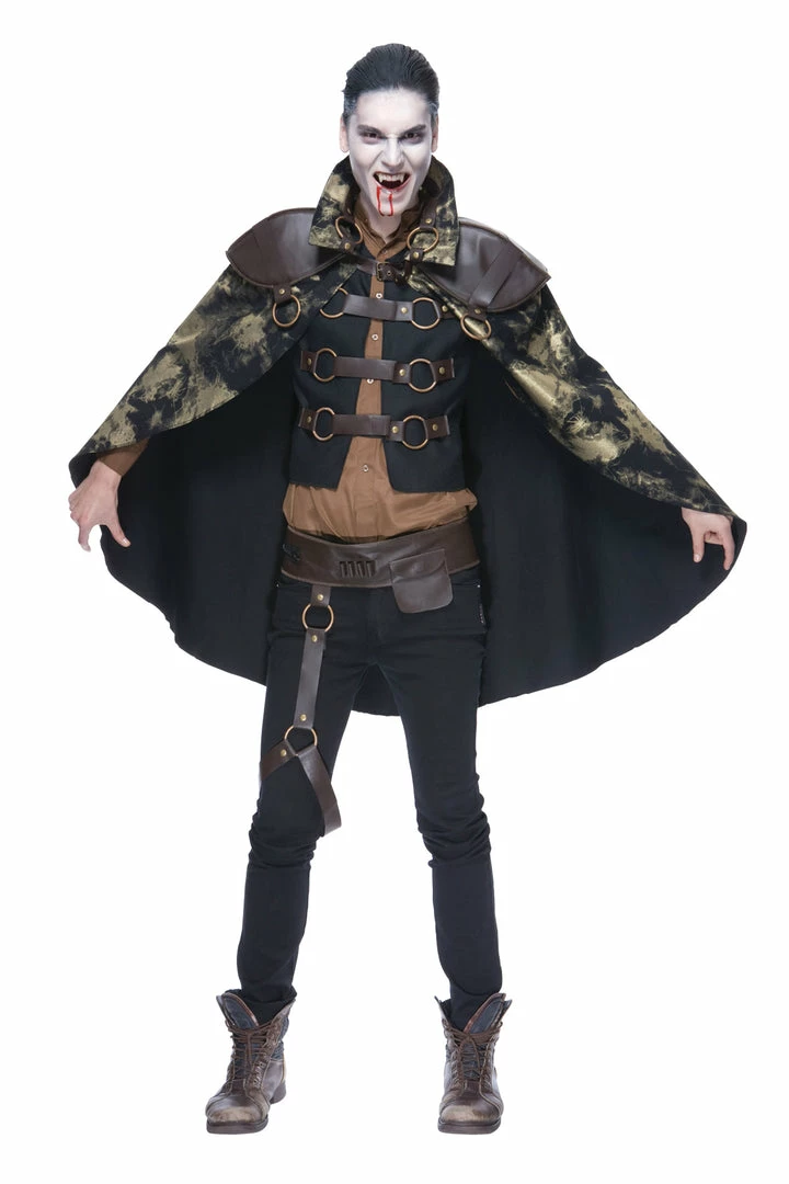 Cape and vest with gothic metal ring accents with matching style utility belt. Adult LG 46-48.