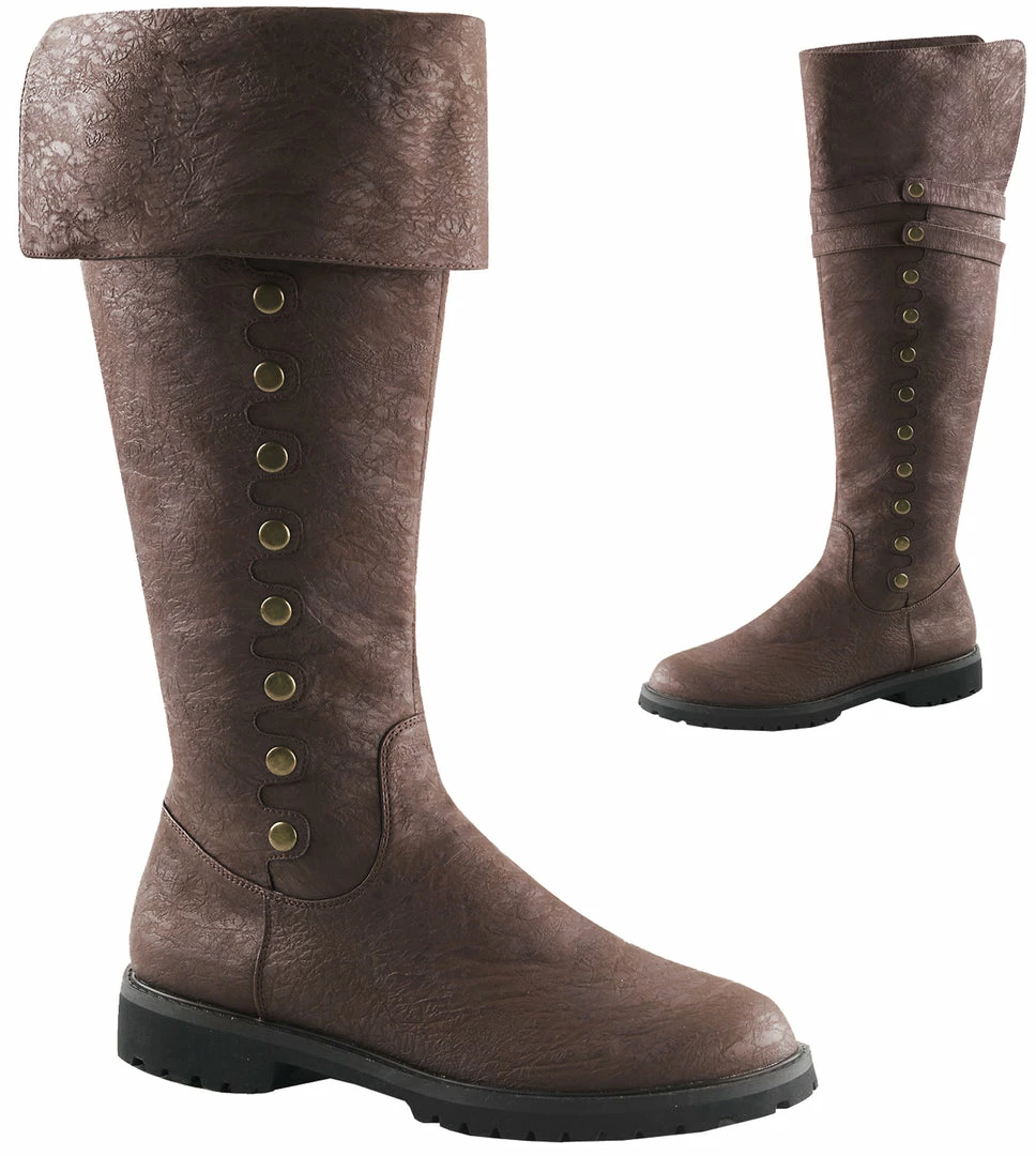 Men’s cuffed, knee high boot with faux button detail with 1 1/2-inch heel.