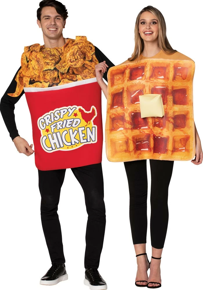 Come as the Best Combination ever (second to peanut butter and jelly), when you slip on this bucket of chicken and waffle couples costume. These easy to wear polyester Tunic Costumes are easy to wear and to clean. Warning, you may want to bring extra napkins to the party.