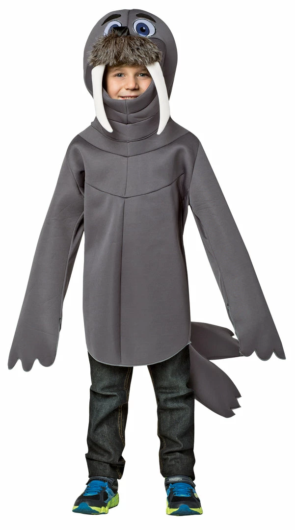 Your little biologist will love dressing up at this gentle giant of the Arctic. This fin-footed marine mammal may be intimidating in size but is really quite pleasant; except, of course, if you are a shellfish. This child’s walrus costume features a gray polyester tunic with flipper sleeves, attached tail, headpiece with large blue eyes, whisker mustache and long tusks. Perhaps a poetic beachside encounter with a carpenter is in order?