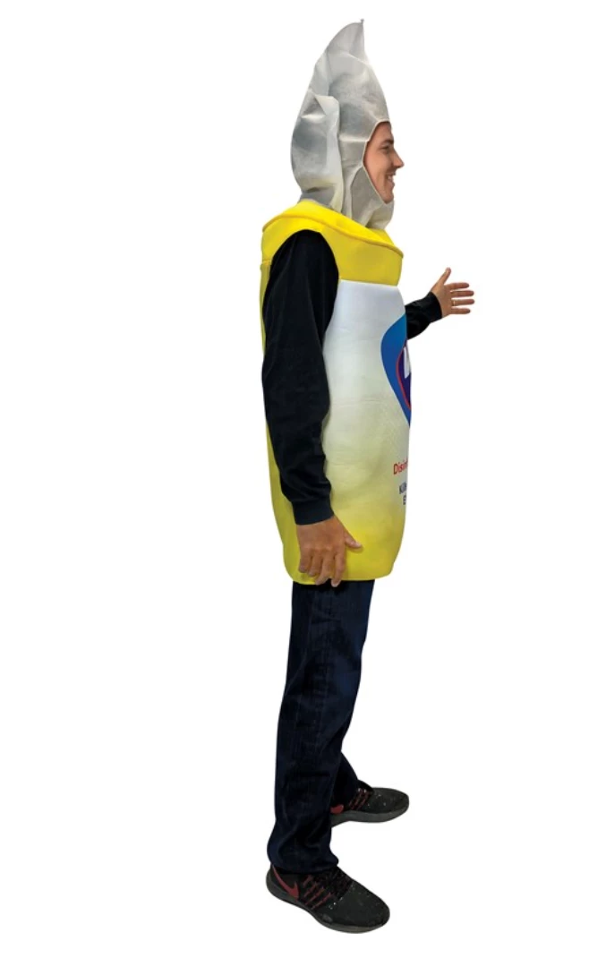 Spread joy not germs! Proudly wear Your Wiped Out! Disinfecting Sanitizer Wipes Halloween Costume and spread the joy not germs! Get ready for some fun and clever laughs! Designed to wear over your clothing with exposed hands and open face for party friendly fun. The costume includes a head in tunic with printed front only. Headpiece is in the likeness of an actual sanitizer wipe product. One size fits most adults. Expertly designed for you with precision and care by the Rasta Imposta team in Runnemede, NJ, USA. Easy wear & care! 100% Polyester. Hand wash inside out. Air dry. Freshen with steamer or cool iron.
