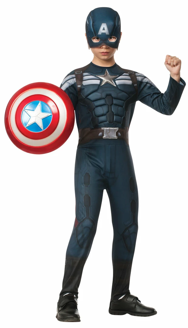 Just like in the new Captain America movie! Jumpsuit and mask. Shield not included. Jumpsuit has muscle chest.