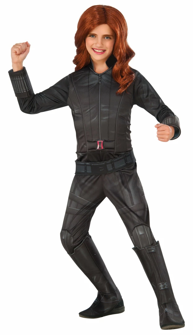 With this Deluxe Black Widow costume your little girl can step into the role of the Russian superspy Avenger and accept the most dangerous of missions. With her wit charm and masterful combat skills she can help save the world–or at least the candy! This child’s Black Widow costume includes a detailed black jumpsuit with front zipper 3D boot tops gauntlets and belt. Add your own red wig and she is ready to fight alongside the Avengers! 2017 Officially licensed Marvel product.