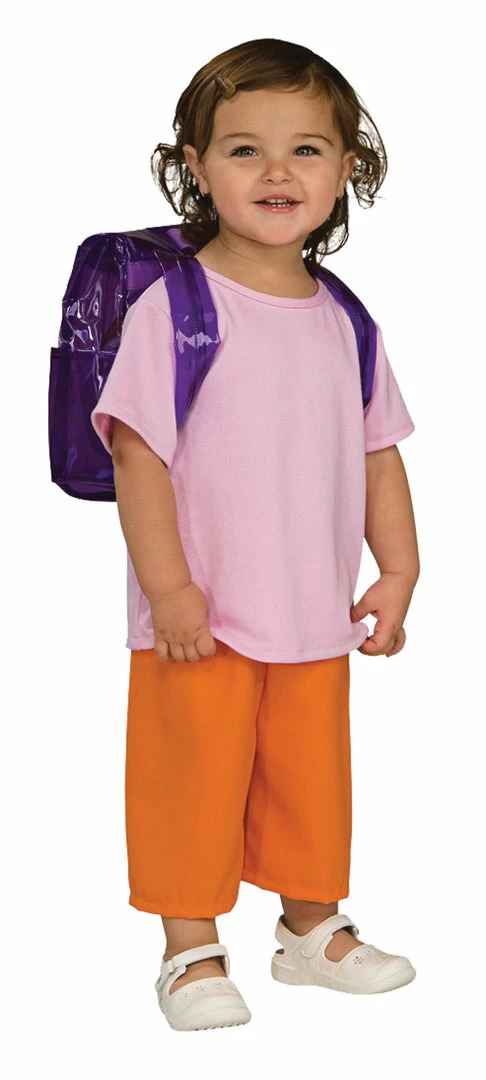 You can be your favorite explorer! Shirt shorts and backpack. Toddler 2-4. backpack is purple.