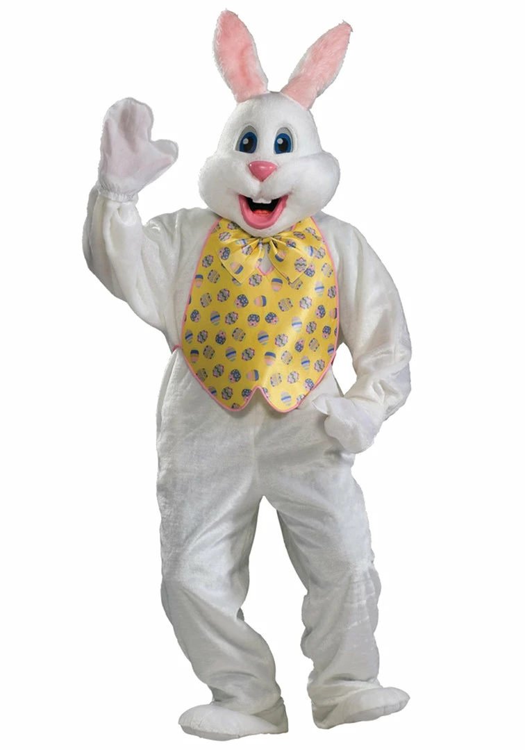 Features: Mascot Head, Extra Hood with Ears, Bow Tie, Vest, Mitts, Jumpsuit with Shoe Covers.