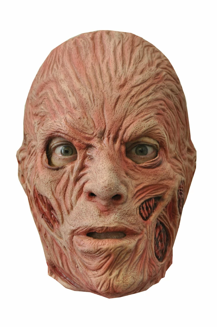 Nicely sculpted, full over the head latex mask of your favorite burnt scarred, blade slashing monster. ONE SIZE FITS MOST ADULTS