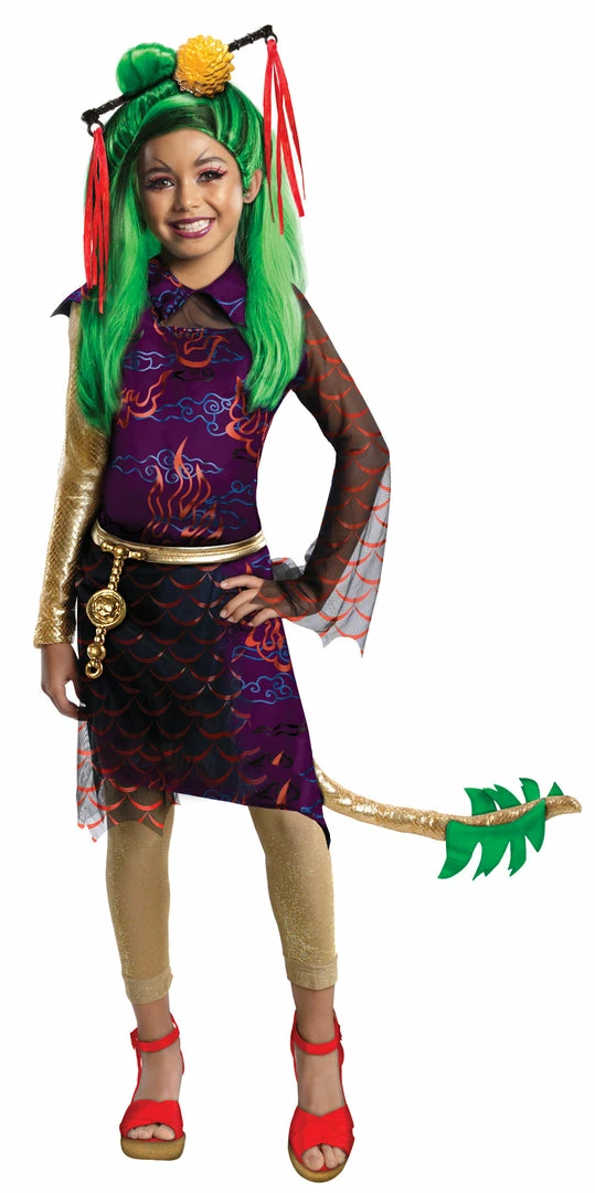 Very colorful costume modeled after the popular Monster High character. Dress tail and belt. Shoes and wig not included.