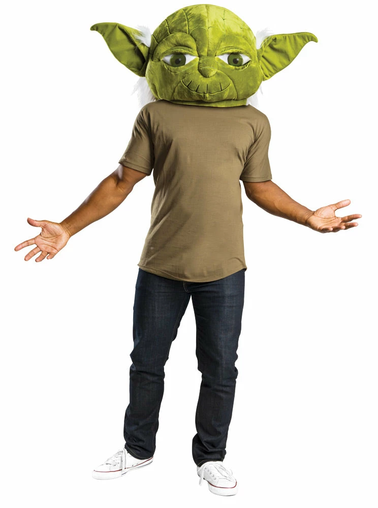 You will love this oversized plush Yoda mask with his familiar tall ears with tufts of white faux fur around the ears. Add your own Jedi costume to re-create the well-loved character. One size fits all.