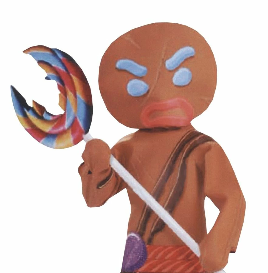 Giant inflatable lollipop for the Gingerbread Warrior appears to have a bite taken from the center.