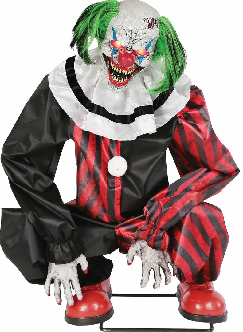 Affordably priced animated scary carnival clown prop with lights and sound. Perfect for any Halloween porch display! Great value and easy to assemble!