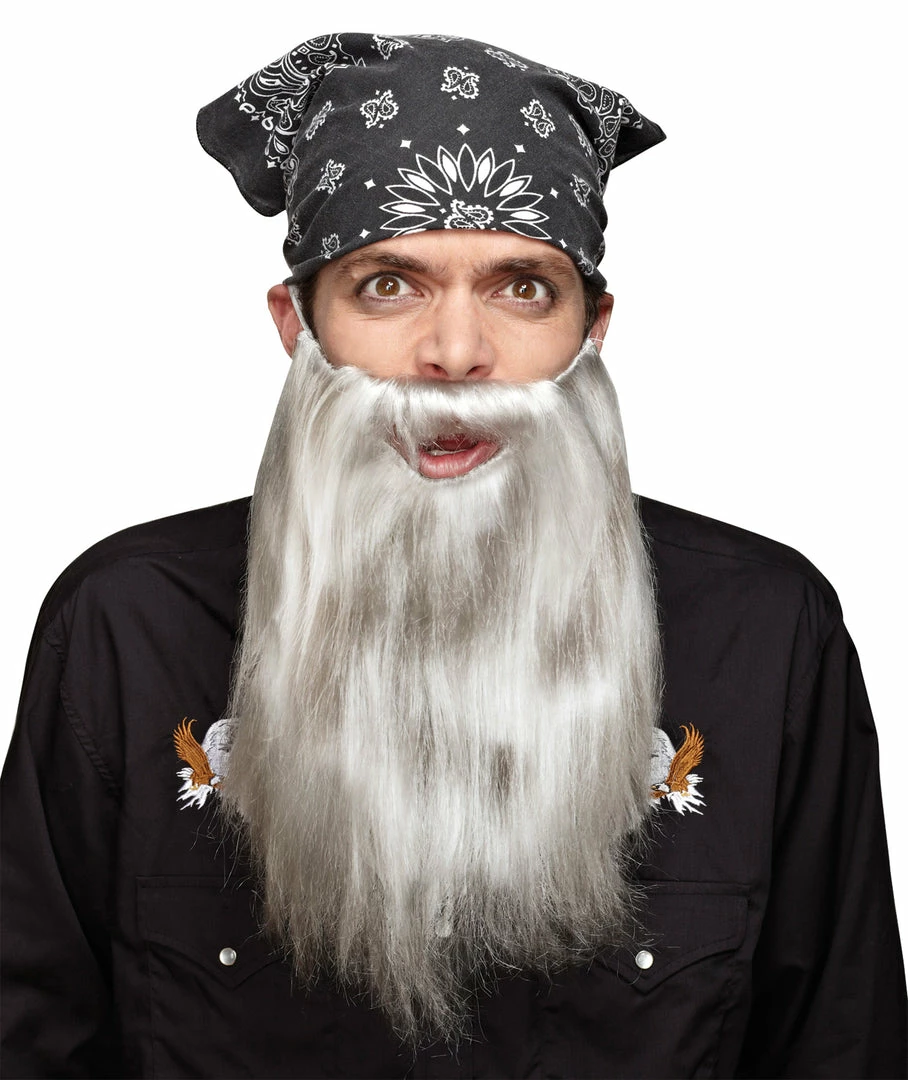 Straight Beard. Grey. One size fits most. Accessories and apparel not included. 12inch synthetic beard.