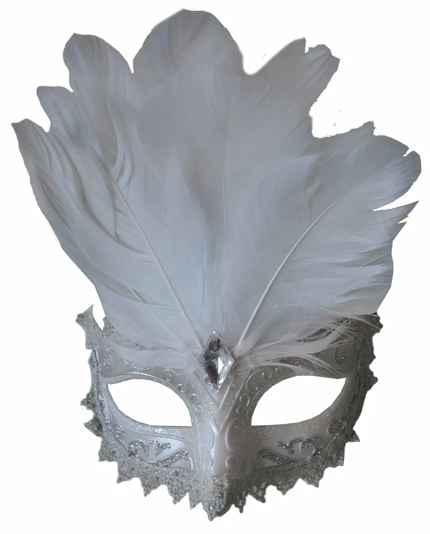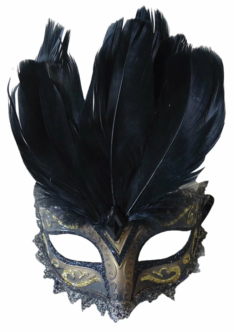 Stylish masquerade mask with feather and detailing.