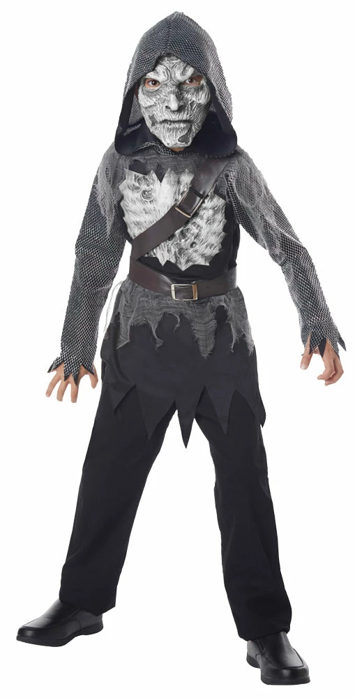 Hooded shirt has attached belt and shoulder strap with latex chest piece and matching face mask. Add your own pants.