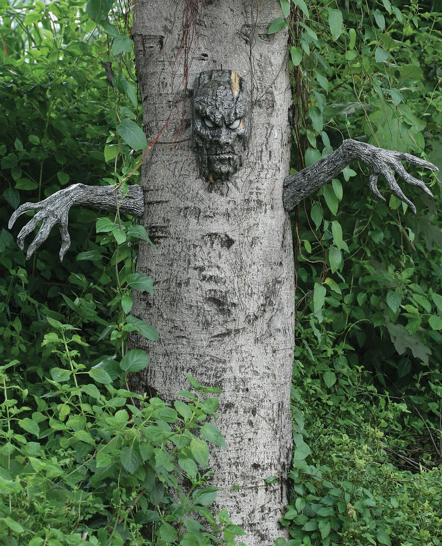 Make the tree in your yard look alive! Add this scary head and arms to give your tree a whole new character. Uses plastic picture hanger-type tabs just drive a wide headed nail into the trunk and hang them on! Great for your haunted yard scene! Head measures 11 inches tall 6 inches wide 3 inches deep. Arms measure 17 inches long with a 5.5 inch hand span.
