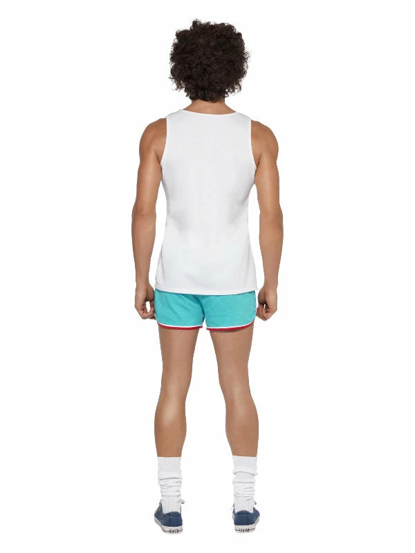 It will be a laugh a minute as you jog into the party in this comical 118 118 Runner Fancy Dress Costume with a white vest top and matching shorts.Â