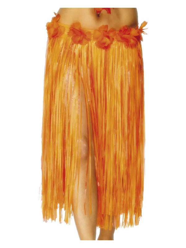 Hawaiian Hula Skirt, Orange, with Flowers & Velcro Fastening, 75cm/29 inches