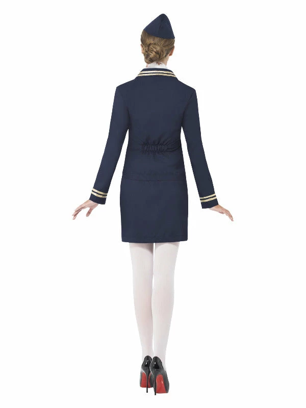 Airways Attendant Costume, Blue, with Jacket, Skirt, Scarf & Hat