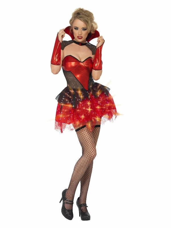All That Glitters Vamp Gloss Costume, Red, Light Up, Dress, Cape & Glovettes