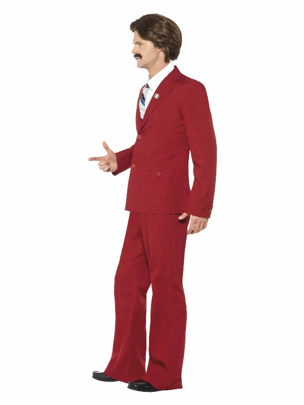 Anchorman Ron Burgundy Costume, with Suit, Moustache, Mock Shirt & Tie