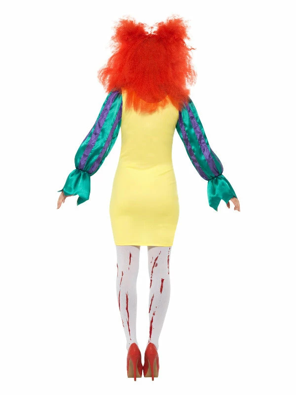 Classic Horror Clown Lady Costume, Multi-Coloured, with Dress, Neck Ruffle & Nose