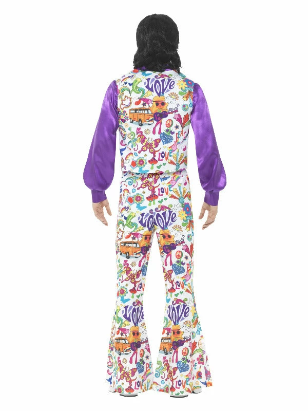 60s Groovy Hippie Costume, Multi-Coloured, with Waistcoat, Shirt & Flared Trousers/PantsÂ