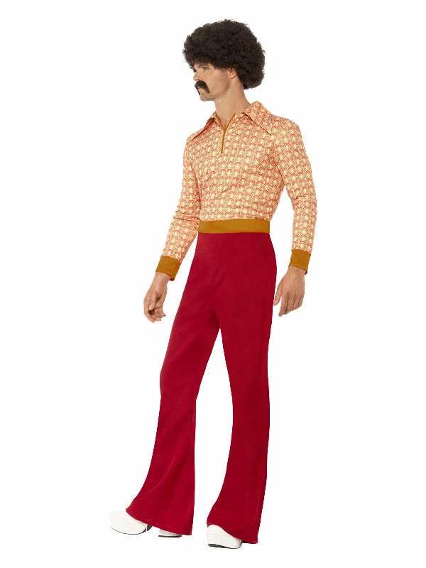 Authentic 70s Guy Costume, Red, with Top & High Waisted Trousers