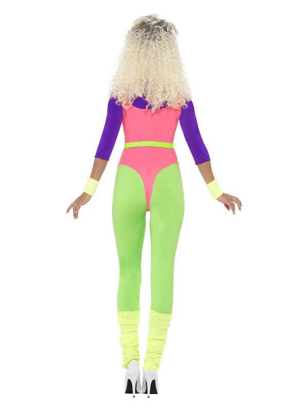 80s Work Out Costume, with Jumpsuit, Neon, Headband & Wrist Cuffs