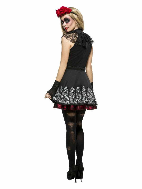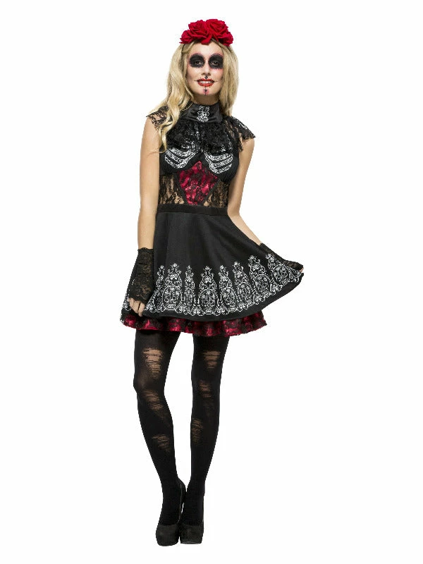 Fever Day of the Dead Costume, Black, with Dress, Attached Underskirt