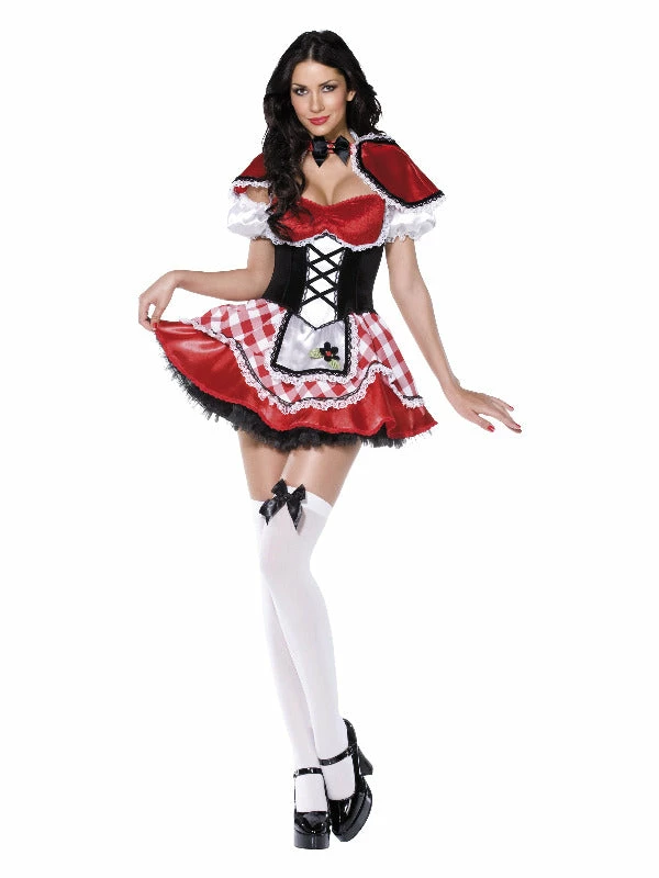 Fever Deluxe Red Riding Hood Costume, Red, Dress with Mock Corset & Apron, Cape & Sleeves