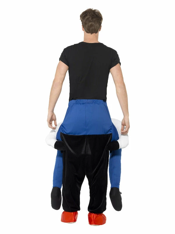 This costume is sure to attract attention this Halloween! The Sinister Clown Piggy Back Costume is a one piece suit with mock legs.