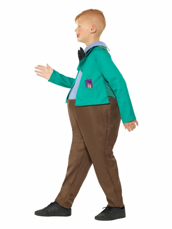 Roald Dahl Deluxe Augustus Gloop Costume, Green, with Hooped All In One, Golden Ticket & Chocolate