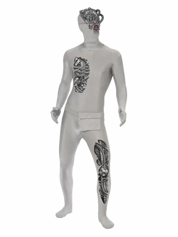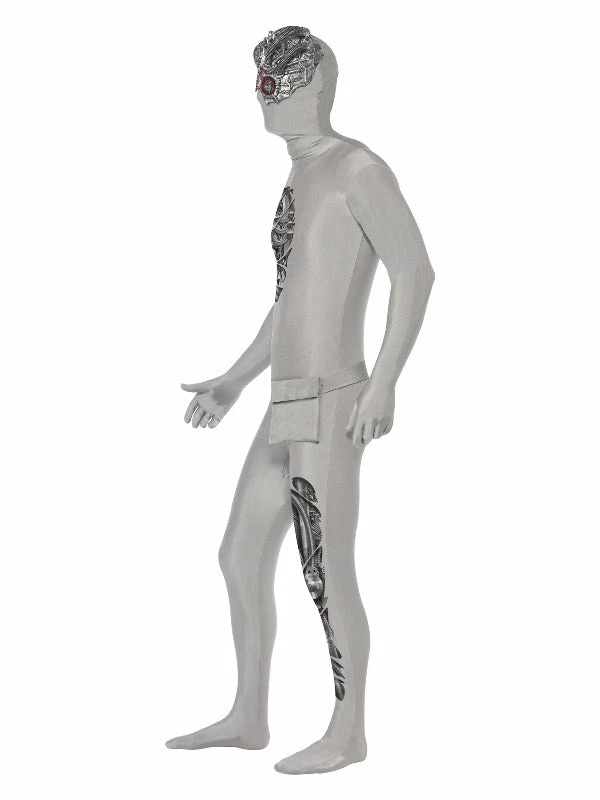 Robotic Second Skin Costume, Grey, Mask, Concealed Fly, Under Chin Opening & Bum Bag