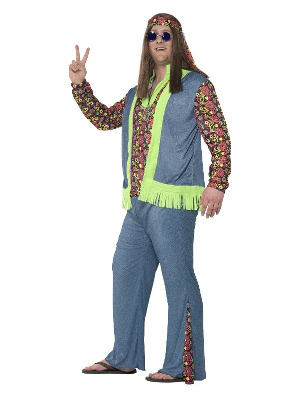 Curves Hippie Costume, Multi-Coloured, with Top, Attached Waistcoat, Flares & Headband