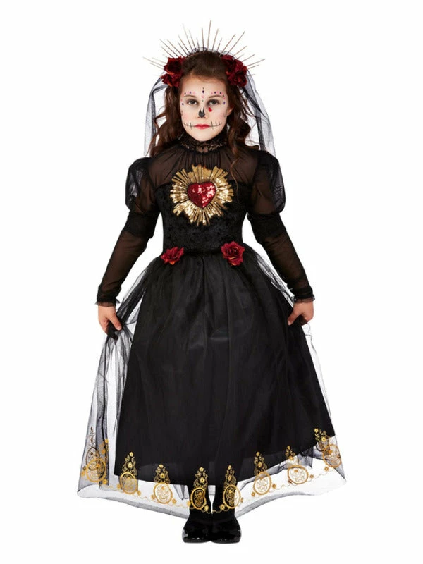 Deluxe DOTD Sacred Heart Bride Costume, Black, Dress & Veiled Headband
