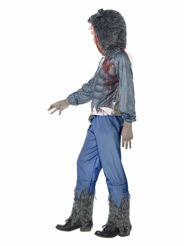 Deluxe Wolf Warrior Costume, Grey, with Hooded Top & Trousers, Sublimation Print