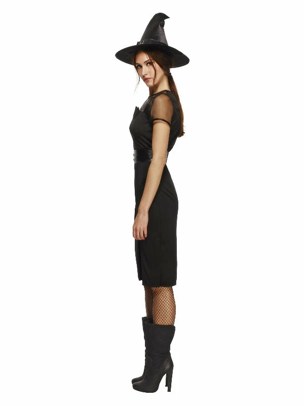 Fever Enchanting Cat Witch Costume, Black, with Dress, Belt & Hat