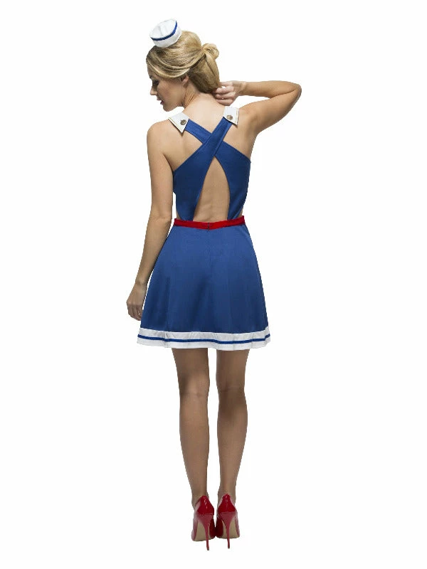 Fever Hey Sailor Costume, Blue, with Cut Out Dress, Attached Underskirt & Mini Hat
