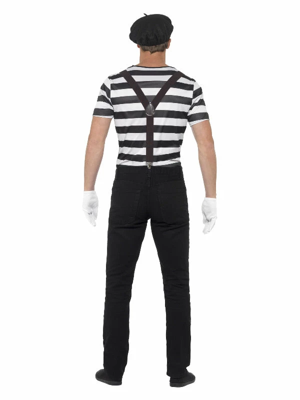 Gentleman Mime Artist Costume, Black, with Top, Beret, Gloves, Braces & Make-Up