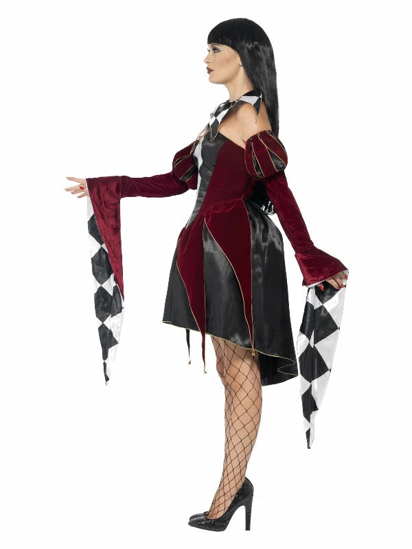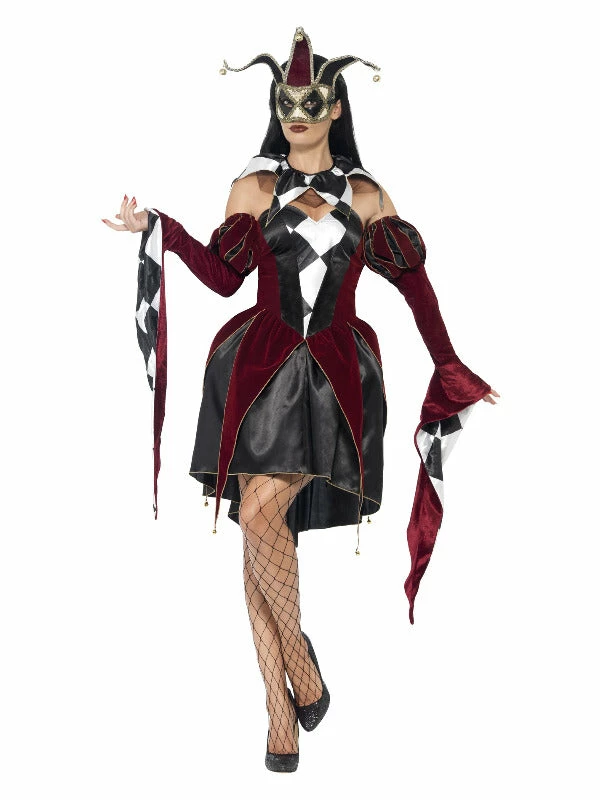 Gothic Venetian Harlequin Costume, Black, with Dress, Sleeves & Collar
