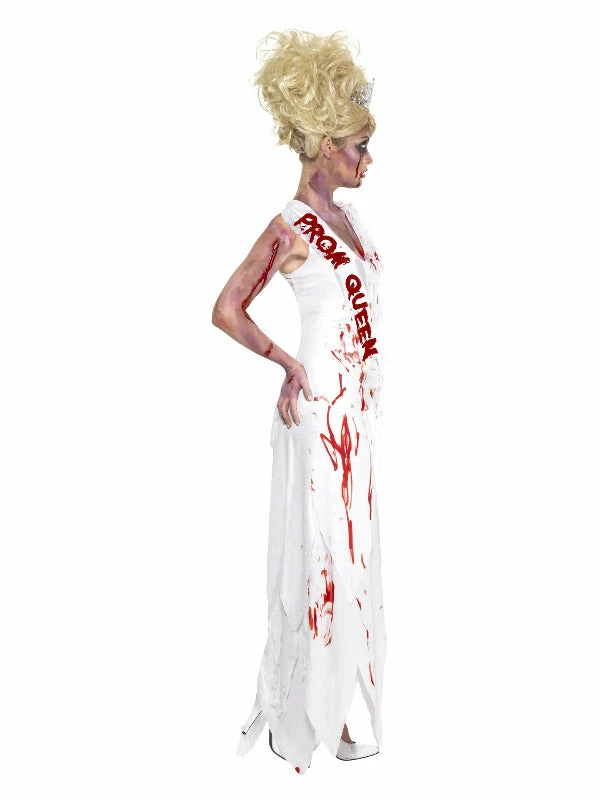 High School Horror Zombie Prom Queen Costume, White, with Dress & Attached Sash
