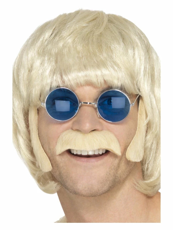 Hippie Disguise Set, Blonde, with Porkchop Sideburns & Moustache, Self Adhesive