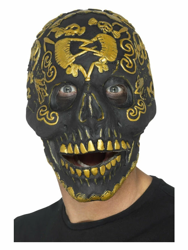 Deluxe Masquerade Skull Mask, Gold, Foam Latex, with Two Piece Separate Moving