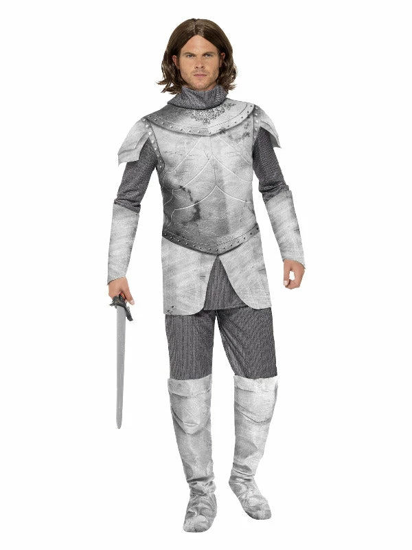 Deluxe Medieval Knight Costume, Grey, with Sublimation Print Top & Trousers