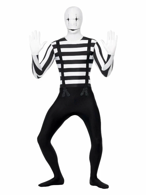 Mime Second Skin Costume, Black, with Bum Bag, Concealed Fly & Under Chin Opening